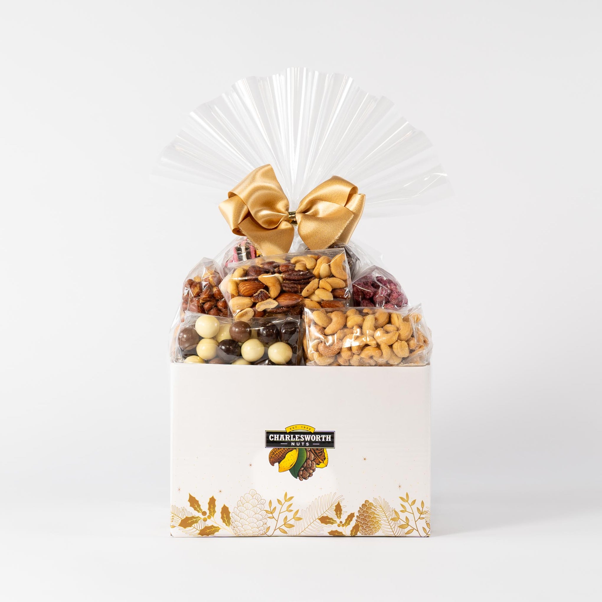 Make this holiday season extraordinary by gifting one of our best-selling gift hampers. Our Presidental Hamper features a selection of 17 tasty gourmet nuts and chocolates. It’s the perfect Christmas gift for your friends, family members, and work colleagues.