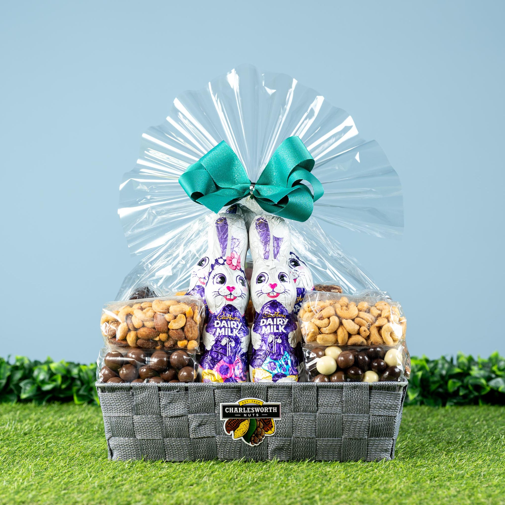 Celebrate Easter with our exquisite Easter Family Gift Basket filled with joy and sweetness! Unwrap 16 individually wrapped treasures from Charlesworth and 4 Easter Bunnies, each a delightful treat for the entire family. Order your Easter basket today and share the love with Charlesworth's premium confections.