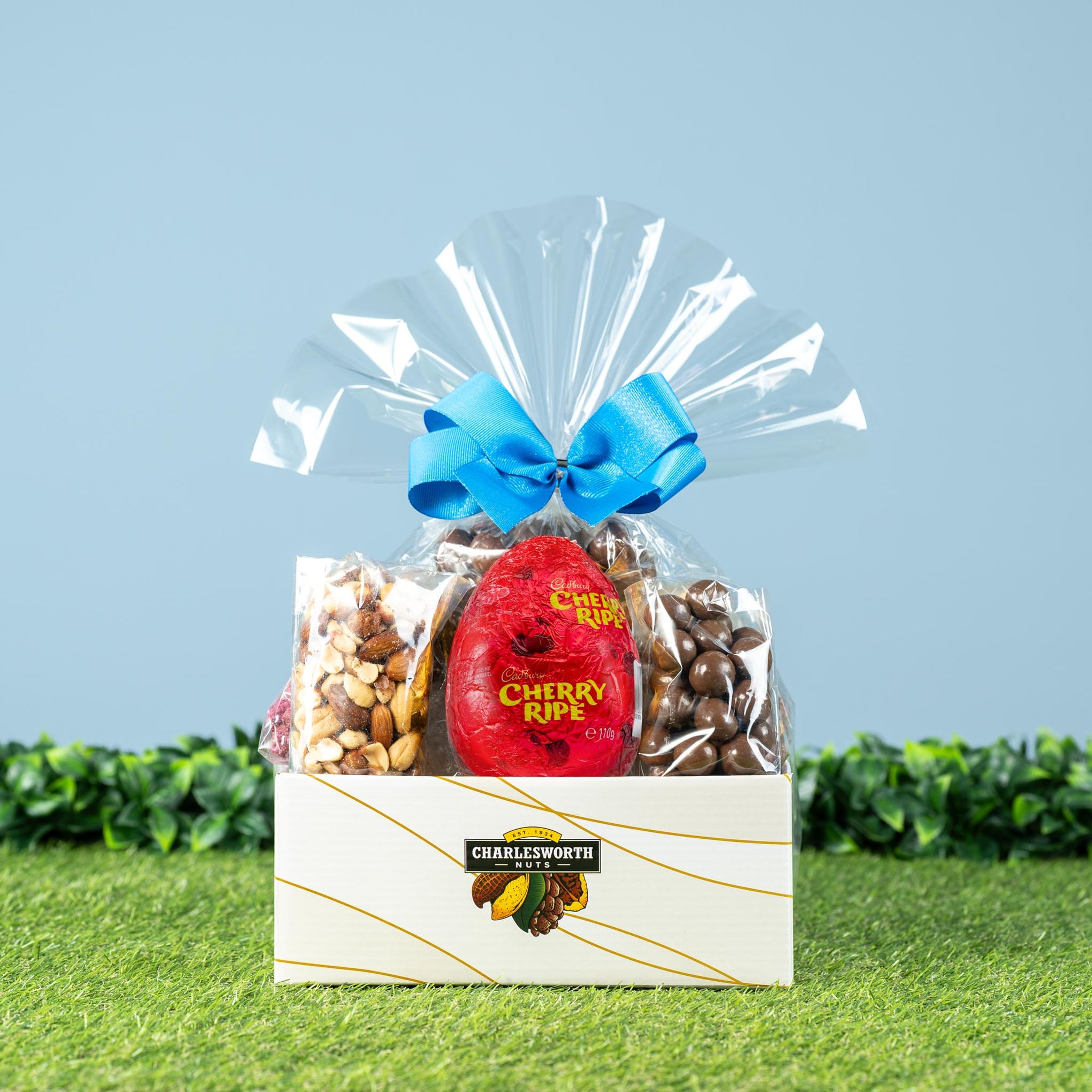 Savour the joy of Easter with our Yummy Delights Gift Basket. Presented beautifully in a ribboned gift basket wrapped in clear cellophane, this clever Easter gift idea is the perfect blend of sweetness for a memorable celebration.
