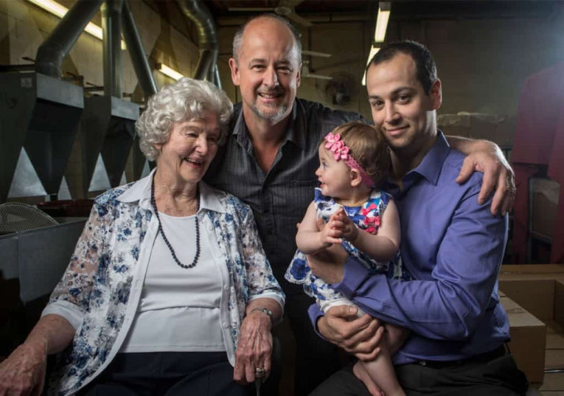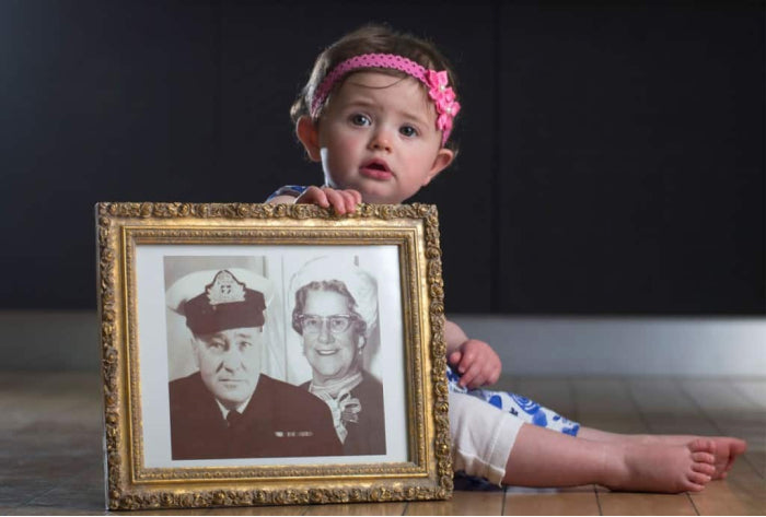 Celebrating 4 generations together – From left to right: Joy Charlesworth (2nd generation, Chappy’s wife), Brett Charlesworth (3rd generation, Chappy’s son), Kain Charlesworth (4th generation, Brett’s son) holding his daughter, young Jayde Charlesworth (5th generation).