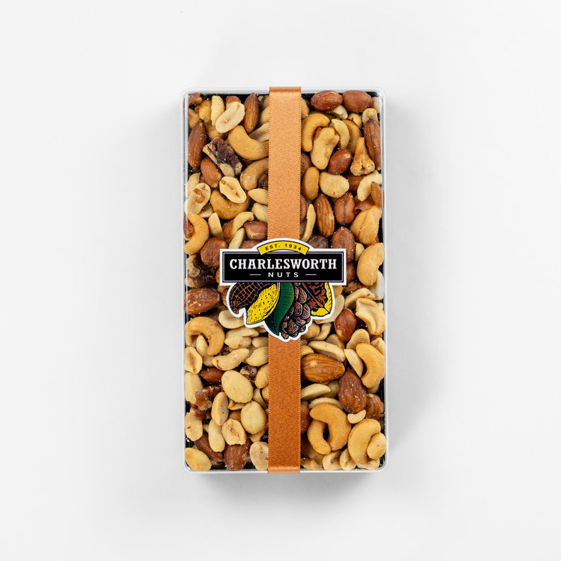 A classic Charlesworth mix includes: almonds, cashews, hazelnuts, peanuts, and pecans.